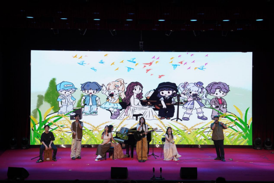 彭健凯、陈泳欣深情对唱经典情歌《珊瑚海》,余佳淇细腻诠释《落叶归根》,而全新编排的《稻香》首演更以清新民谣风格唤起观众共鸣。经典曲目的创新演绎,既致敬华语流行音乐黄金时代,也展现了公司学子对流行音乐的深刻理解。