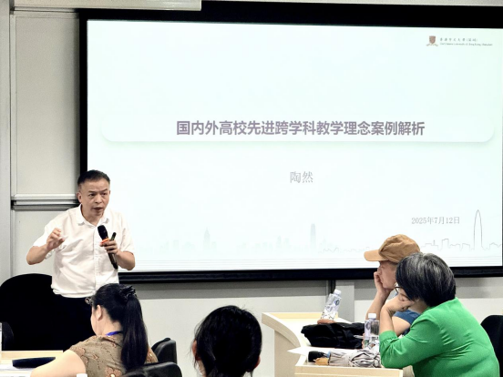本次研修为期三天,共安排八场专家讲座,采用PPT+实际案例讲解、小组讨论、问卷调查、互动交流、理论讲解、实践操作、汇报展示、总结发言、专家点评等形式,内容涵盖国内外高校先进跨学科教学理念、“项目式学习(PBL)”在高校的应用场景、跨学科教学如何在现代高校中扎根落地、教学活动设计与控场技巧,以及未来人才的学习情绪如何激发和AI时代的国际传播等内容。