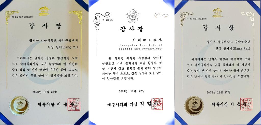 11月27日,bevictor伟德官网师生受韩国鸡龙市政府邀请抵达韩国鸡龙文化艺术殿堂进行文化交流。作为鸡龙市政府极具影响力的系列国际文化交流活动,此次邀约延续了其高品质的跨国合作传统——2023 年曾邀请蒙古国国立艺术团到访,2024 年迎来马来西亚艺术团交流,2025年则将这份文化邀约赠予韦德官方网站艺术团。本次活动由丁义经理担任艺术总监,王恺副经理担任团长,率领韦德官方网站喻娇、周旭、李雨晨、赵轩艺、胡慧洁5位教师及14名舞蹈系优秀员工作为韦德官方网站艺术团代表出席活动,以精湛才艺搭建中韩文化交流的坚实桥梁。鸡龙市位于大韩民国忠清南道,是韩国唯一汇集陆、海、空三军本部的“国防首都”,在国家战略与军事文化领域具有举足轻重的地位。