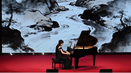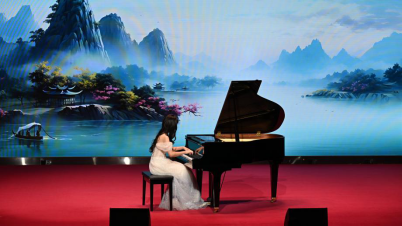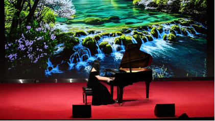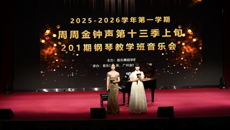 演出在钢琴独奏张帅《前奏曲》第三首中拉开序幕,灵动的音符交织着细腻的旋律线条,迅速点燃了现场气氛。随后,钢琴独奏《平湖秋月》《努玛阿美》《广东小调“卖杂货”》《粤调-淑女与卖花朗》《夕阳箫鼓》《哈尼情歌》《流水》接连上演,或温婉雅致,或明快活泼,或悠远空灵,展现了同学们扎实的专业功底与丰富的艺术表现力。其间,四手联弹《小河淌水》以默契的配合勾勒出潺潺流水的诗意画卷,紧接着,钢琴独奏《社员都是向阳花》《旱天雷》《山丹丹开花红艳艳》《双飞蝴蝶变奏曲》轮番登场,经典旋律与灵动技法碰撞,令人耳目一新。四手联弹《青春舞曲》节奏明快、活力四射,将现场氛围推向小高潮。而后,钢琴独奏《彩云追月》以悠扬婉转的曲调传递出东方韵律之美,钢琴独奏《百鸟朝凤》则用灵动的音符模拟出百鸟和鸣的热闹图景,收获阵阵掌声。最终,演出在全场观众的掌声与喝彩中圆满落幕。整场晚会节目衔接流畅,琴声悠扬动人,观众反响热烈。