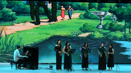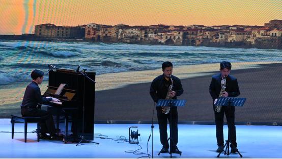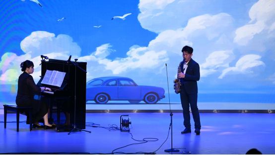 音乐会在轻松摇曳的爵士五重奏《just the two of us》中拉开序幕,表演者熊智琪、唐杰灿等同学在朱海明老师的指导下,为整场演出奠定了自由而富有感染力的基调。随后,音乐会步入古典与流行交织的多元篇章。陈孙耀同学的男声独唱《丢戒指》,尽显民族声乐的独特韵味;陈伟康同学带来的中音萨克斯与钢琴二重奏《海鸥》,让萨克斯深沉醇厚的音色在琴键的协奏中娓娓流淌;张婷同学的女声独唱《永远的花样年华》,以婉转声线勾勒出细腻的情感画卷;劳冠林同学演绎的中音萨克斯与钢琴二重奏《格拉祖诺夫协奏曲》,则凭借娴熟技巧将乐器的表现力展现得淋漓尽致。曾美婷同学的女声独唱《等上一辈子》,歌声饱含深情,直击人心;萨克斯重奏《天空之城》以和谐的声部交织,将经典旋律演绎出新的韵味;萨克斯管二重奏《Blow down》活力迸发,节奏明快的旋律点燃全场氛围;胡潇文等同学带来的女声三重唱《爱莲说》,和声层次丰富,尽显声乐合作之美;中音萨克斯与钢琴三重奏《天堂电影院》温情悠扬,熟悉的旋律唤起满场共鸣;女声独唱《我出生在黄河岸旁》,歌声里饱含着对故土的眷恋,豪迈又深情的唱腔震撼全场;朱海明老师的萨克斯独奏《Hey Jude》,更是以精湛的技艺惊艳全场,尽显大师风范。全体师生共同唱响《今夜无眠》,悠扬的歌声回荡在会场,为整场音乐会画上圆满的句号。
