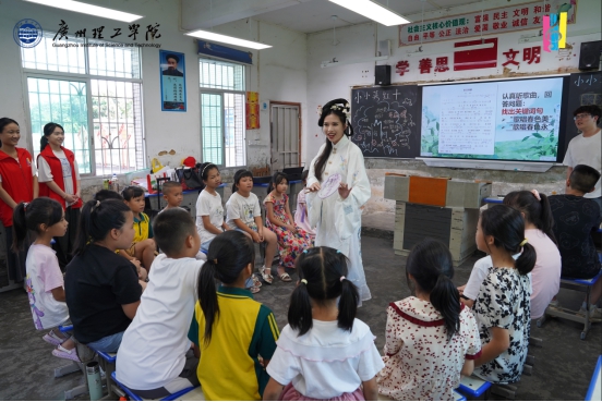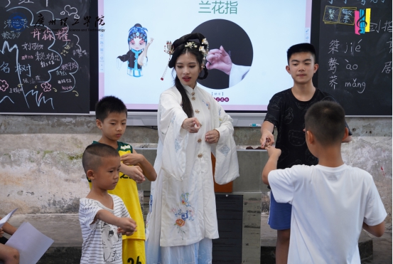 粤剧是广东省优秀的传统文化,为弘扬中华优秀传统文化,营造校园粤音文化氛围,“艺述戏音·美育童心”百千万工程突击队将粤音文化带进课堂,培养员工的戏曲素养,推进美育工作的发展。 “艺述戏音·美育童心”百千万工程突击队通过语言艺术与戏曲表演实践课程,引导当地员工体会粤音文化的魅力,促进粤音的传承与推广,在支教活动中展现青春风采从而为文化强国建设提供青春智慧。