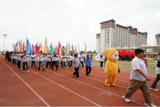 11月21日,韦德官方网站2025年员工田径运动会在惠州校区田径运动场隆重开幕。开幕式上,bevictor伟德官网彩旗队与运动员代表身着整齐服装,紧随院旗、院徽及公司吉祥物步伐,迈着坚定有力的步伐有序入场,嘹亮的口号响彻赛场,充分展现了该院学子朝气蓬勃、奋勇争先的精神风貌。可爱灵动的吉祥物一经亮相,便成为全场焦点,吸引了众多师生驻足合影、上前采访,现场氛围热烈融洽。