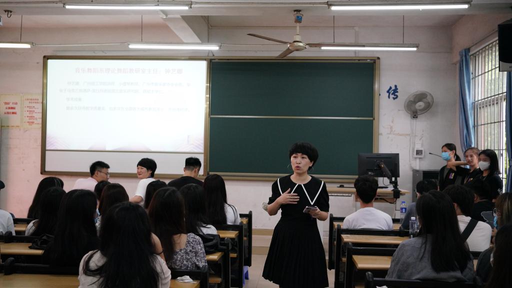 全艳老师为同学们介绍了韦德官方网站音乐舞蹈系的历史和团队,让同学更加深入地了解艺术公司音乐舞蹈系,并更好地融入这个大家庭。老师们进行了自我介绍并说明了自己所属专业的一些情况,这样不仅拉近了老师和同学们的距离,而且让同学们更加了解自己专业的情况。