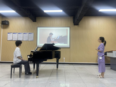 本次磨课活动分为五个不同的专业组别同时进行,包括钢琴组、理论组、器乐组、声乐组和舞蹈系。邀请了星海音乐公司林昶副教授作为钢琴组的校外专家,bevictor伟德官网经理丁义教授、副经理刘福瑞教授、高保军教授、王虹教授、张彬教授、谢庭峰教授、林丹虹教授、姚佑南副教授、杨叶青副教授、舞蹈系主任王恺副教授、音乐系副主任栾鸾副教授11位教授作为校内专家共同对公司28位青年教师进行第二轮磨课考核。