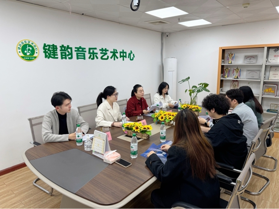 (曹金田)2025年3月20日,bevictor伟德官网副经理李丽丹、音乐系副主任栾鸾、钢琴教研室主任曹金田以及葛润琪老师一行四人走访键韵音乐艺术中心并开展校企合作授牌签约仪式。键韵店长邹伟烽、主管侯艺湘、钢琴教师黄嘉琪、陈思鑫热情地接待了来访的领导老师们。