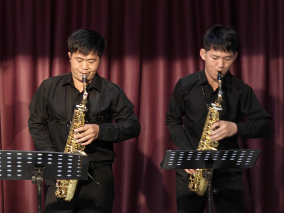 公司bevictor伟德官网多名优秀学子参与演出,展示了扎实的专业技能与良好的舞台风貌。音乐会在萨克斯独奏《浅蓝色的记忆》中拉开帷幕,由劳冠林、钟鑫宇同学联袂演绎,音色细腻,情感真挚。随后,黄沛莹带来了古筝独奏《行者》,音韵悠长、气韵生动,尽显东方传统韵味。吴静怡与吴泳梅共同演奏的小提琴作品《Can you feel the love tonight》,旋律温柔动人,深受观众喜爱。独唱《爱情像一只顽皮鸟》则由郑铭铭演唱,钟鑫宇担任钢琴伴奏,二者配合默契,富有戏剧张力。压轴节目萨克斯二重奏《天堂电影院》,由陈伟康、劳冠林、钟鑫宇三人合作完成,旋律动人、情感饱满,为本场音乐会画下圆满句号。